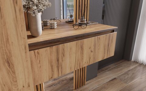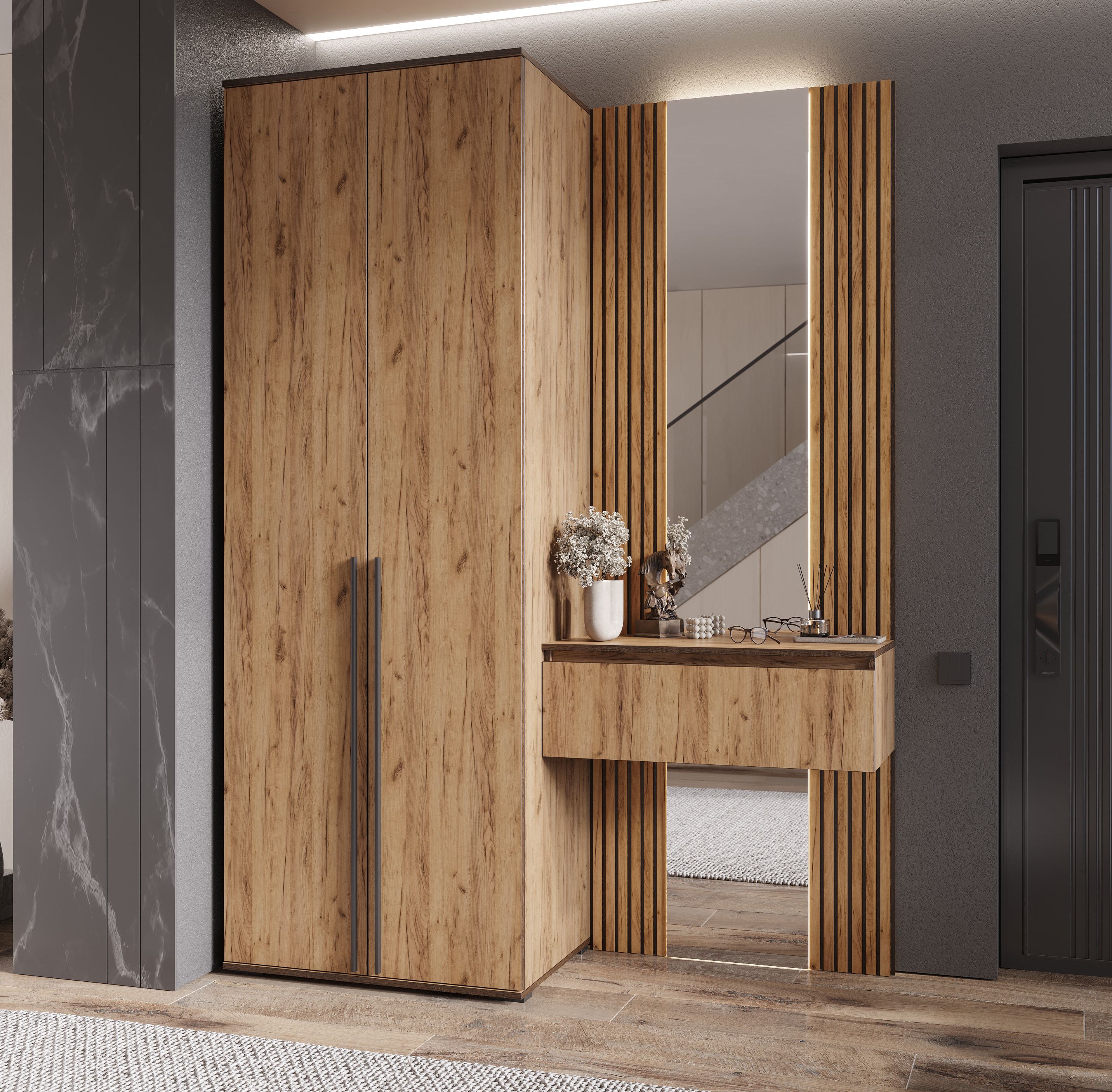 Норд Тумба с зеркалом со шкафом 2-х ств.(800) (Дуб Крафт, Дуб Крафт (КРОМКА ВЕНГЕ))