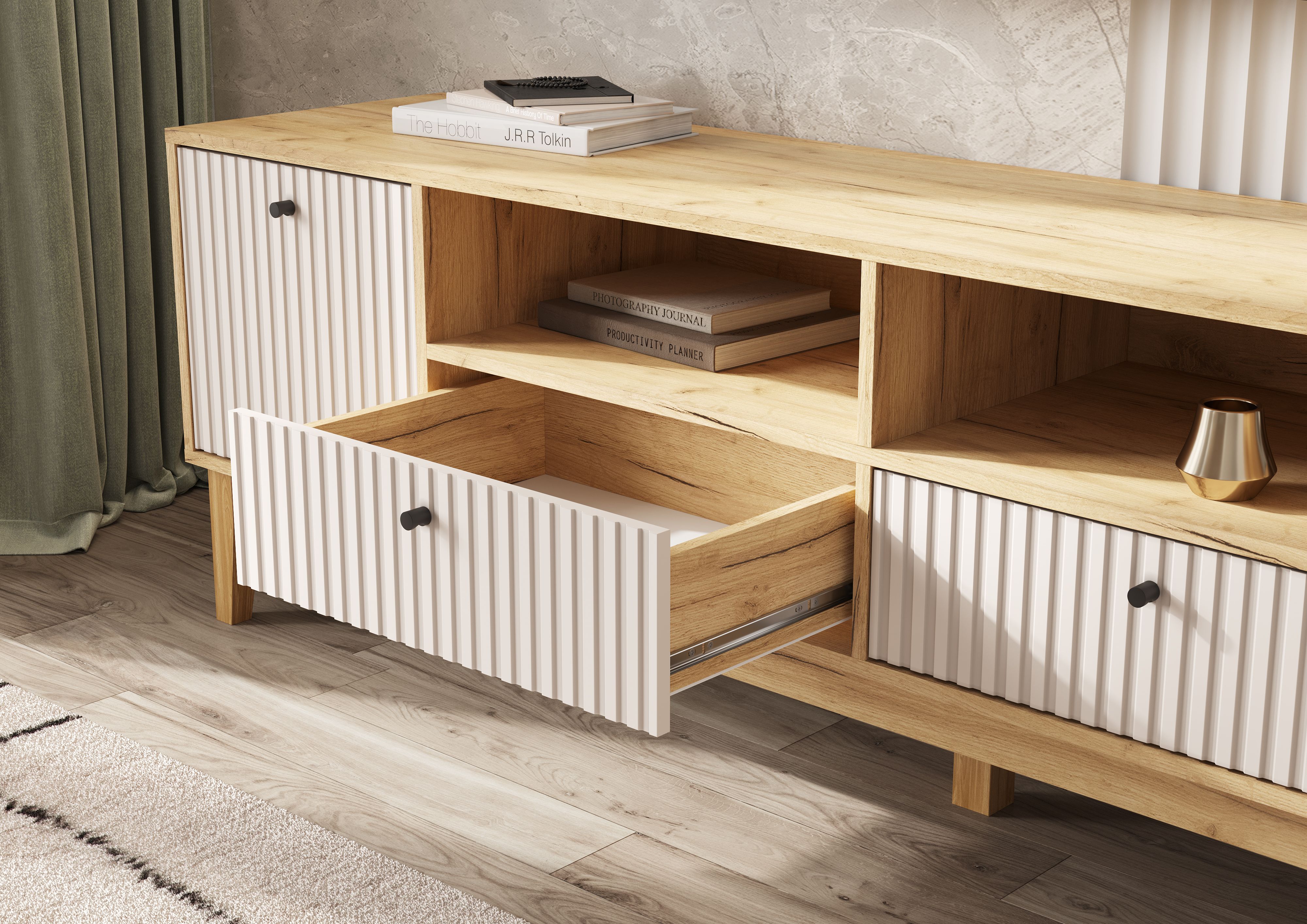 Оливия Тумба ТВ 2 двери 2 ящика (Кашемир, Дуб Крафт )
