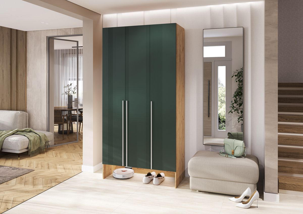 Прихожая Луна Шкаф 3-х ств. (Браш Мени Грин, Дуб Крафт)