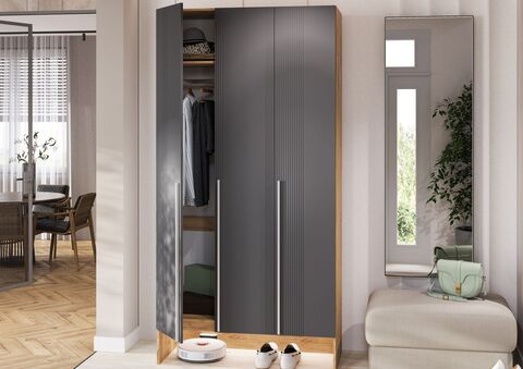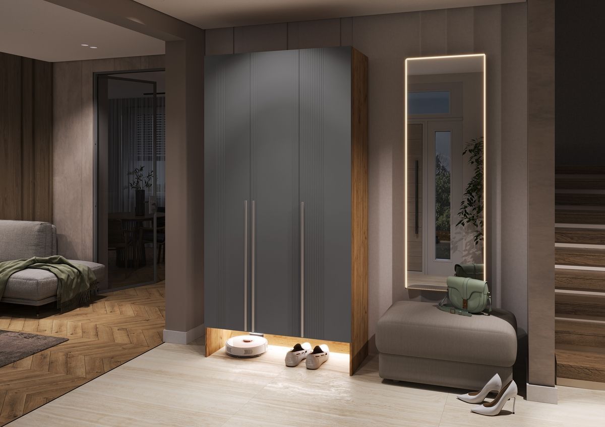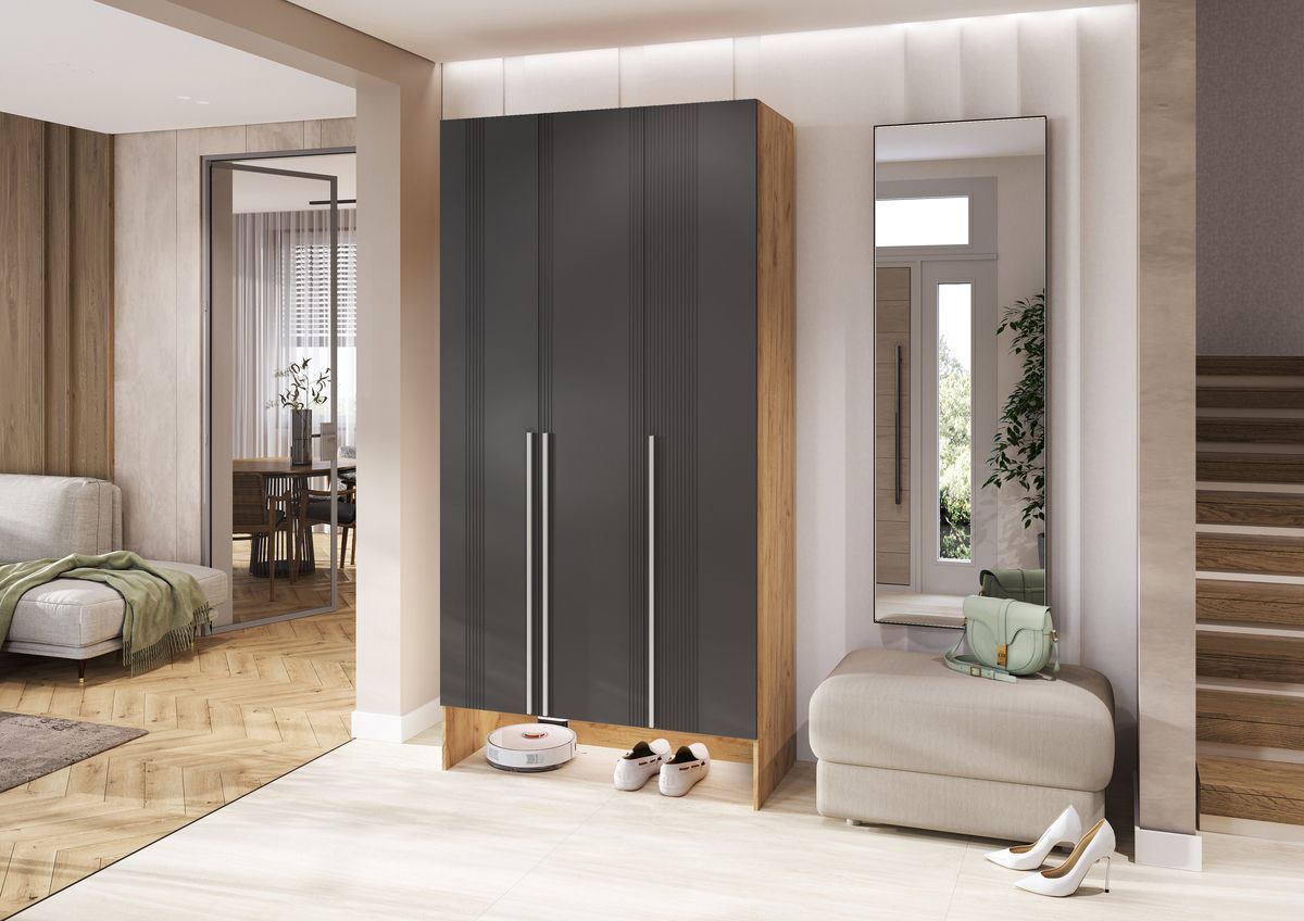 Прихожая Луна Шкаф 3-х ств. (Графит Софт NEW, Дуб Крафт)
