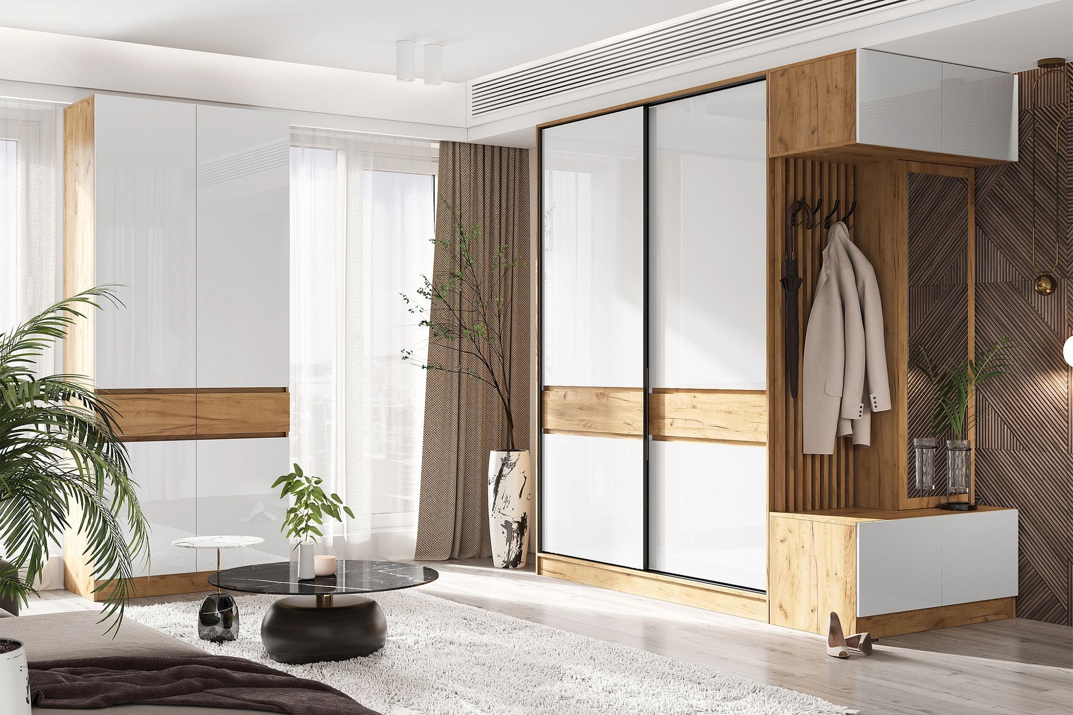 Прихожая Роджинамиф №18 Белый глянец / Дуб крафт