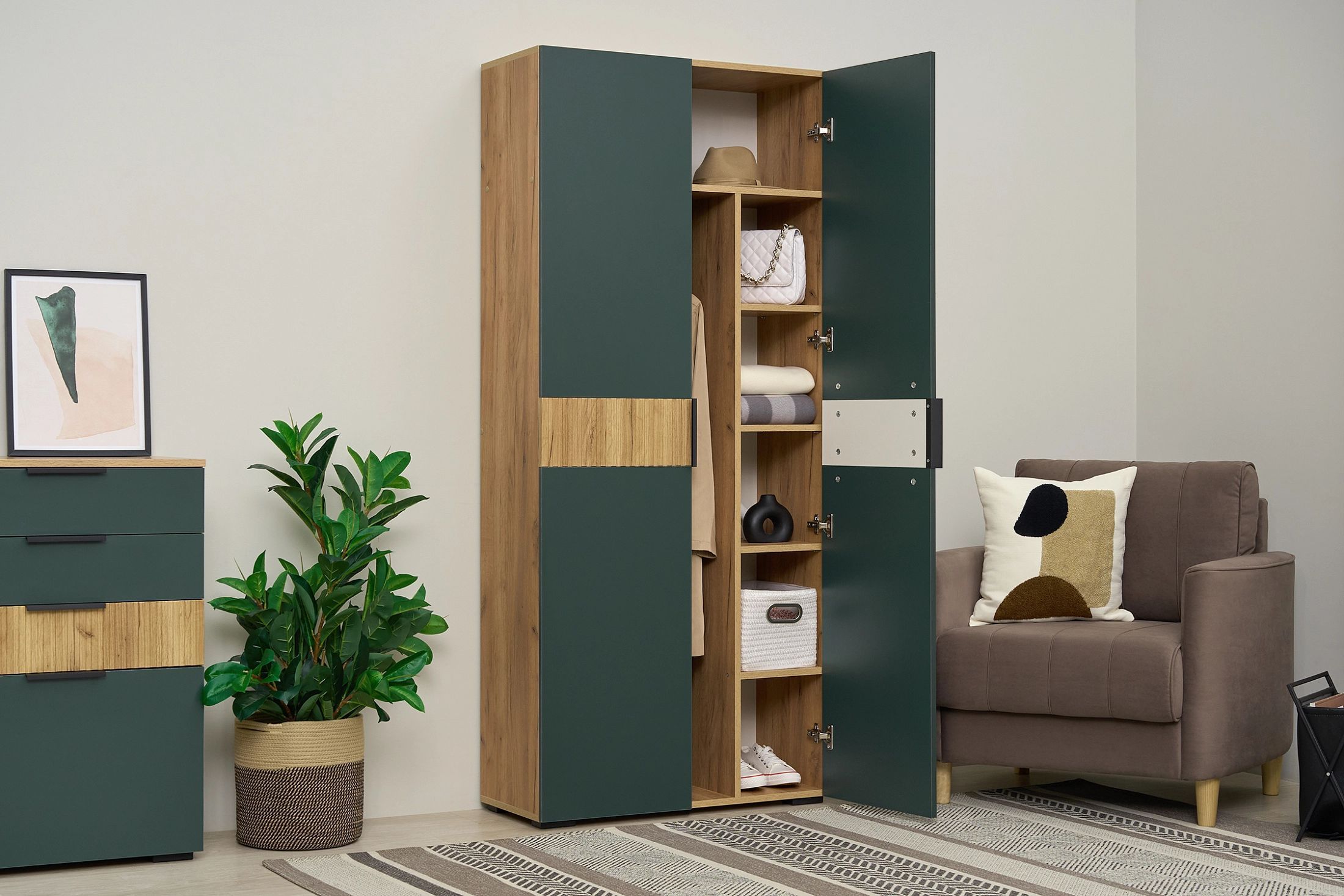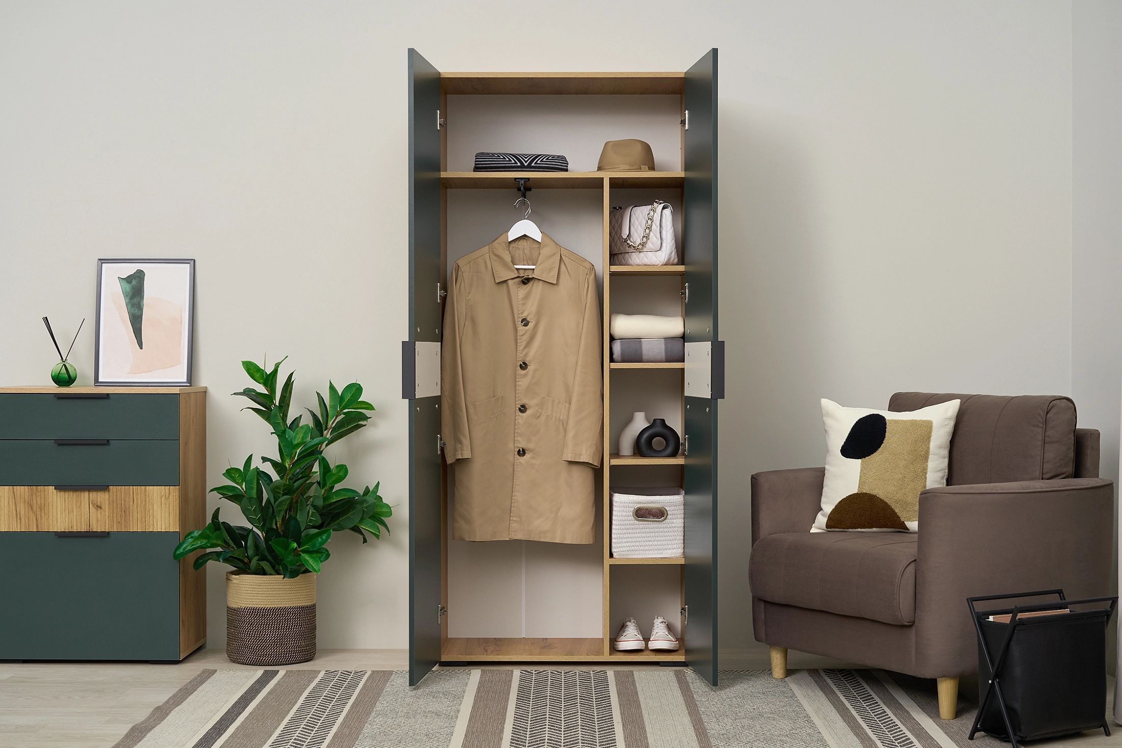 Роджинамиф Шкаф 2-х ств. (800) (Изумрудный/Дуб Крафт, Дуб Крафт)