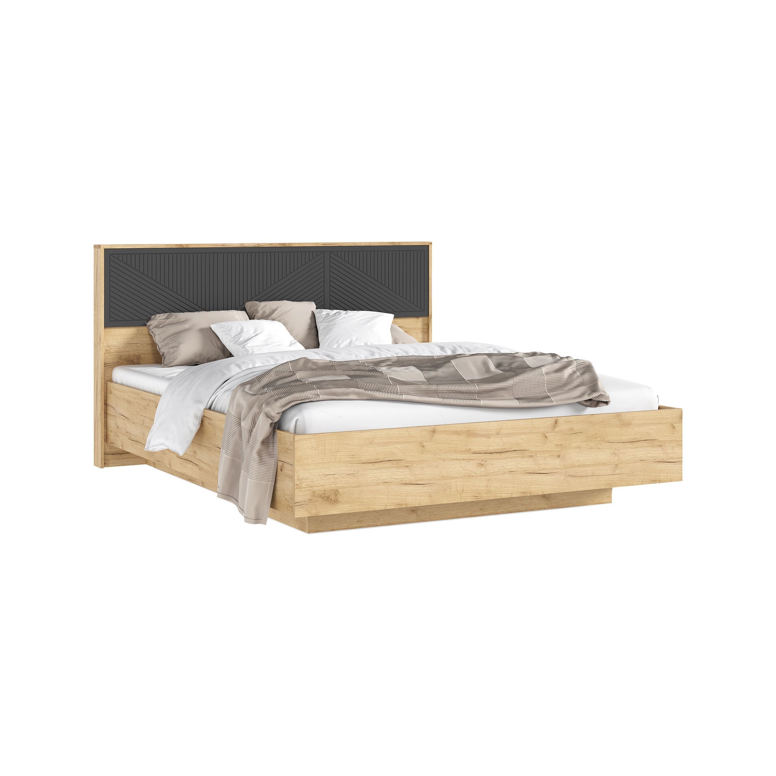 С/Г Сильвия Кровать парящая 1,6м (ортопед дерево) (Браш Графит/Дуб Крафт, Дуб Крафт)
