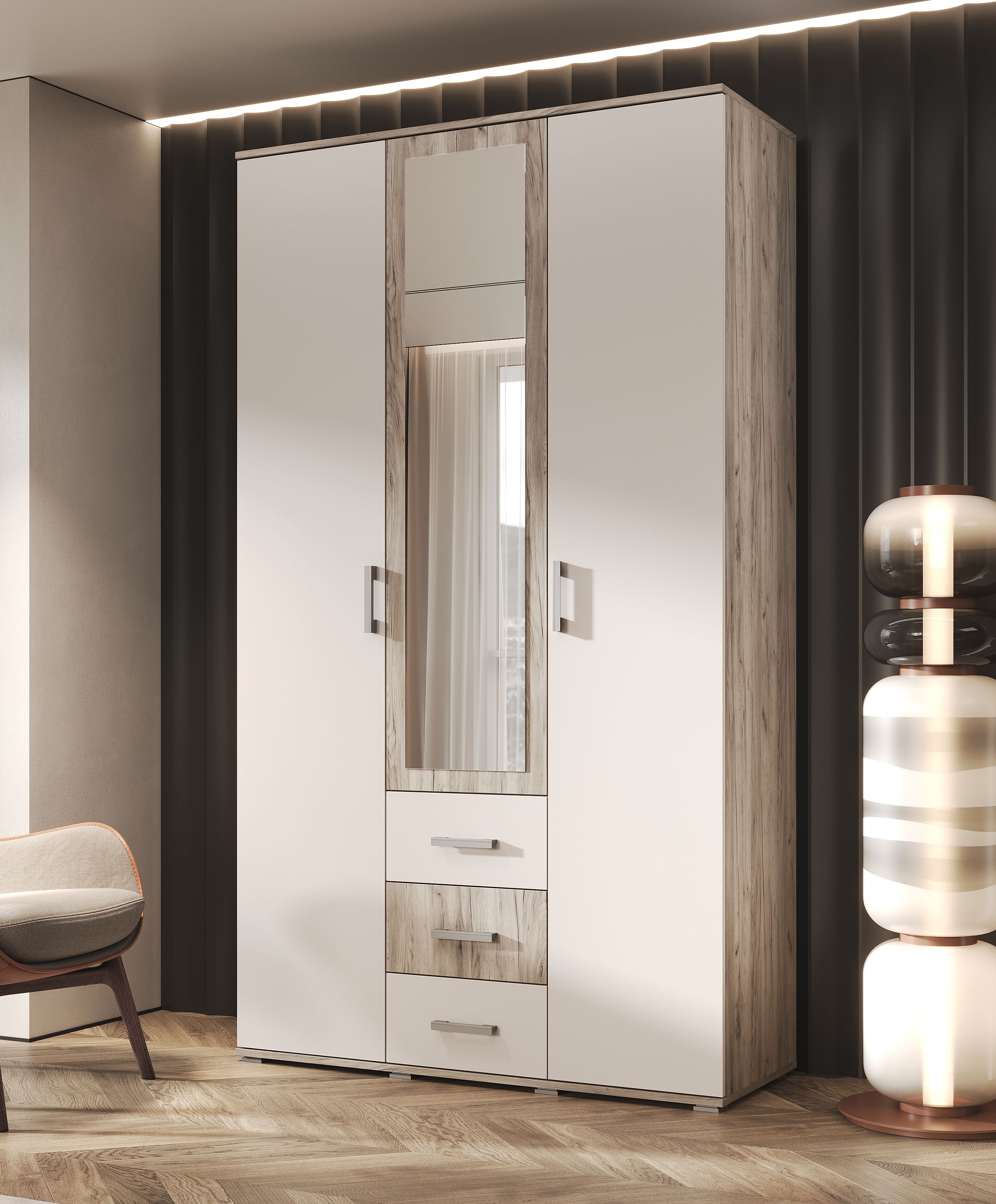 Шкаф 3-х ств Белла (гостиная) (Кашемир, Дуб Крафт серый)