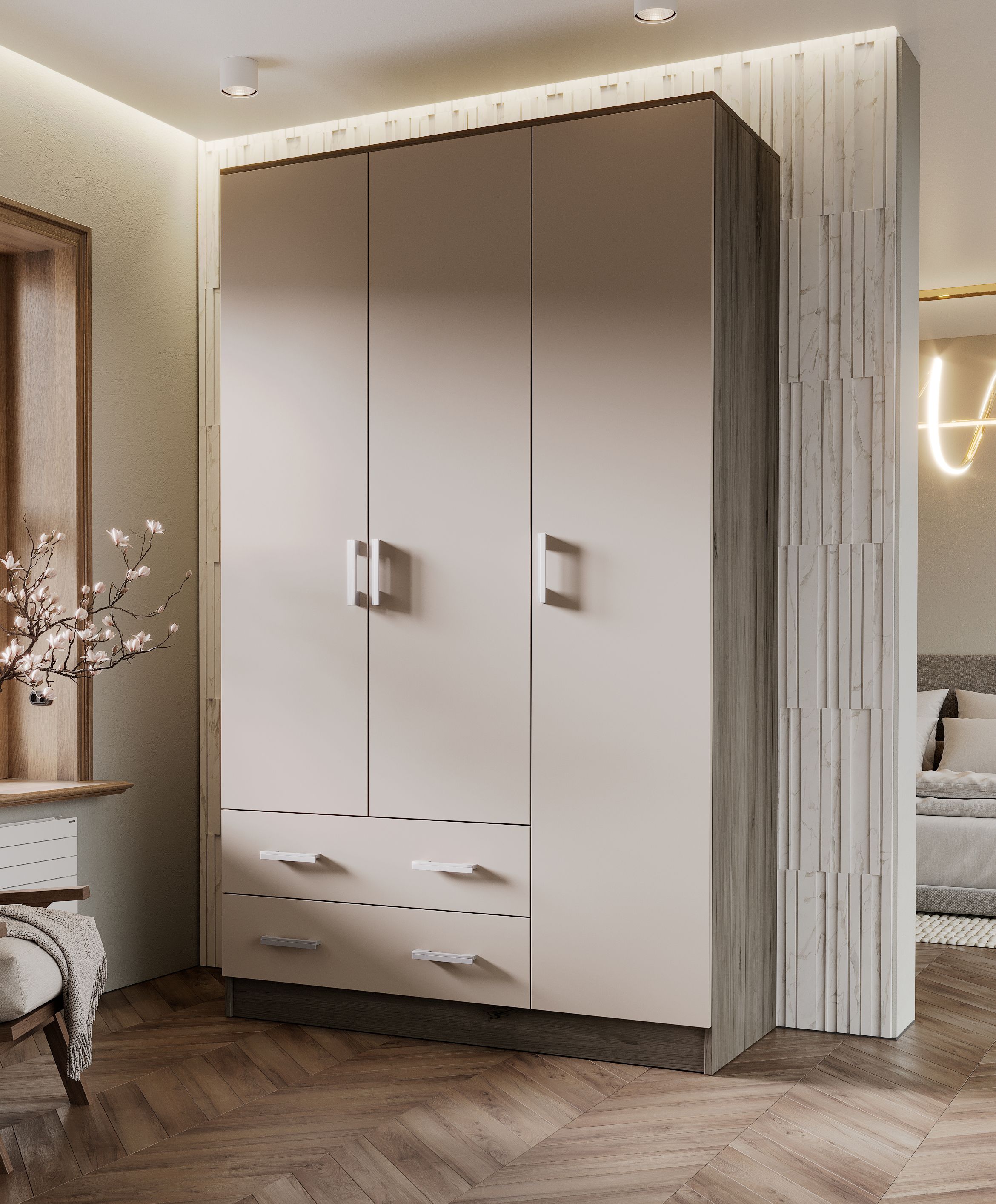 Шкаф 3-х ств. (Кашемир, Дуб Крафт серый)