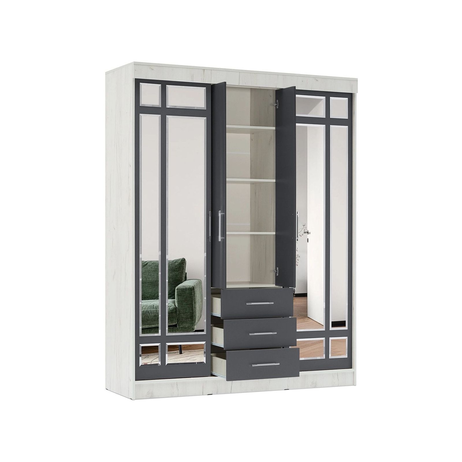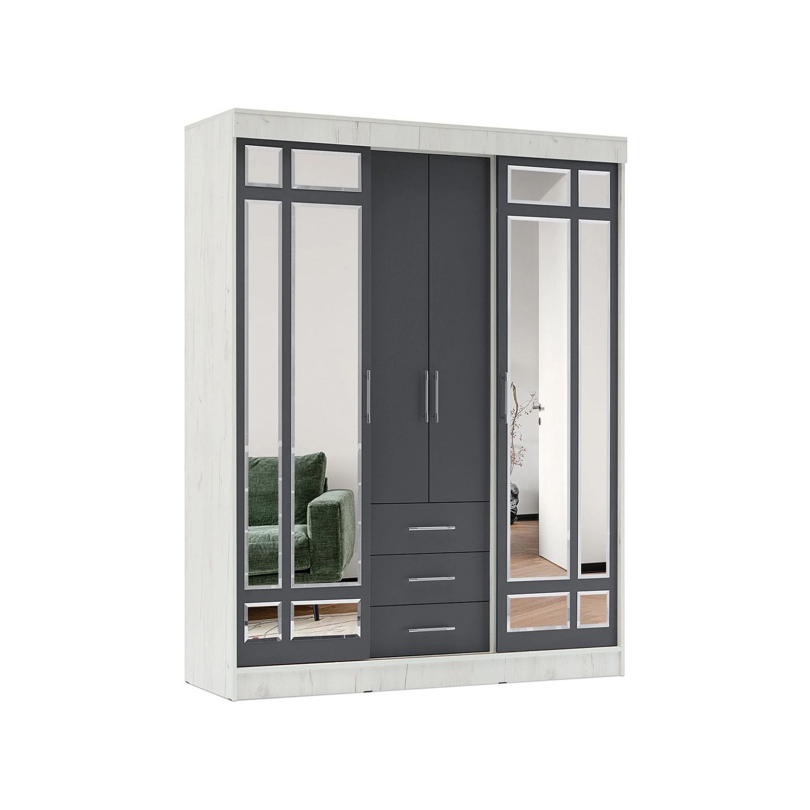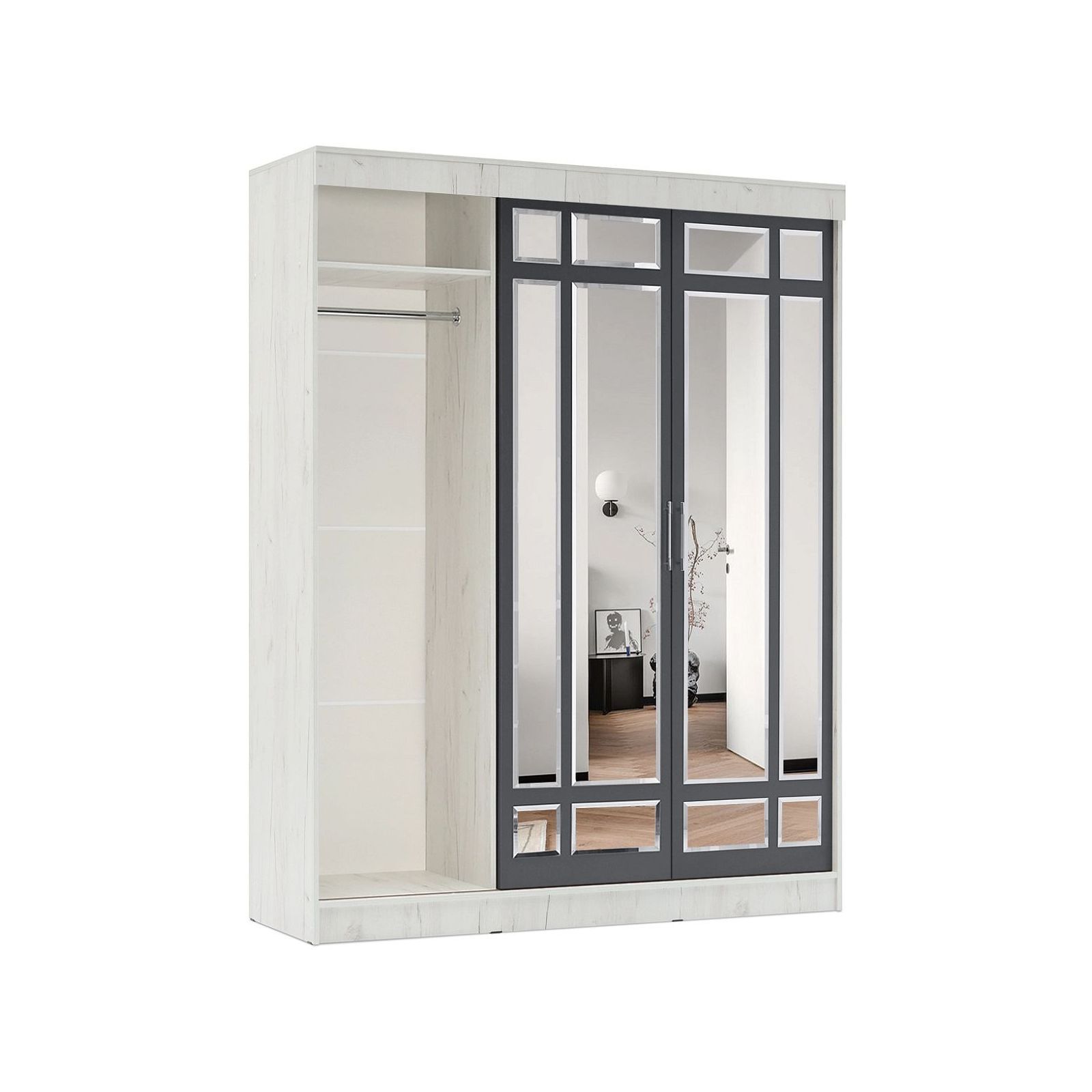 Шкаф-купе Маэстро (Графит, Дуб Крафт Белый)