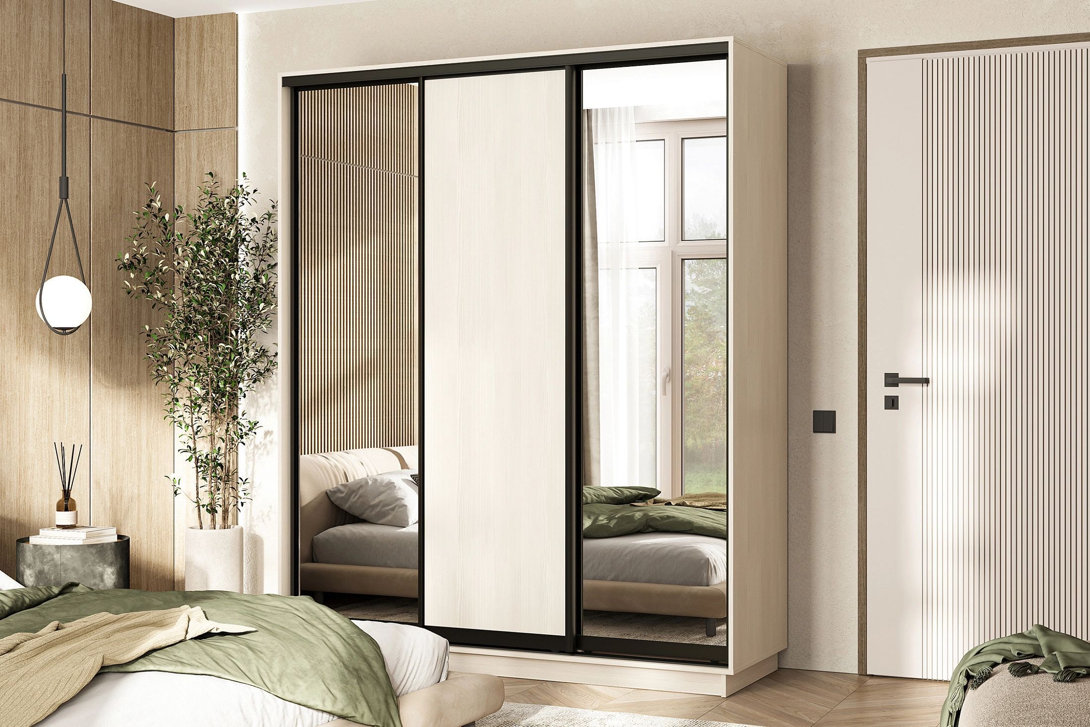 Шкаф-купе Тринити NEW (1800) Два зеркала Сандал светлый