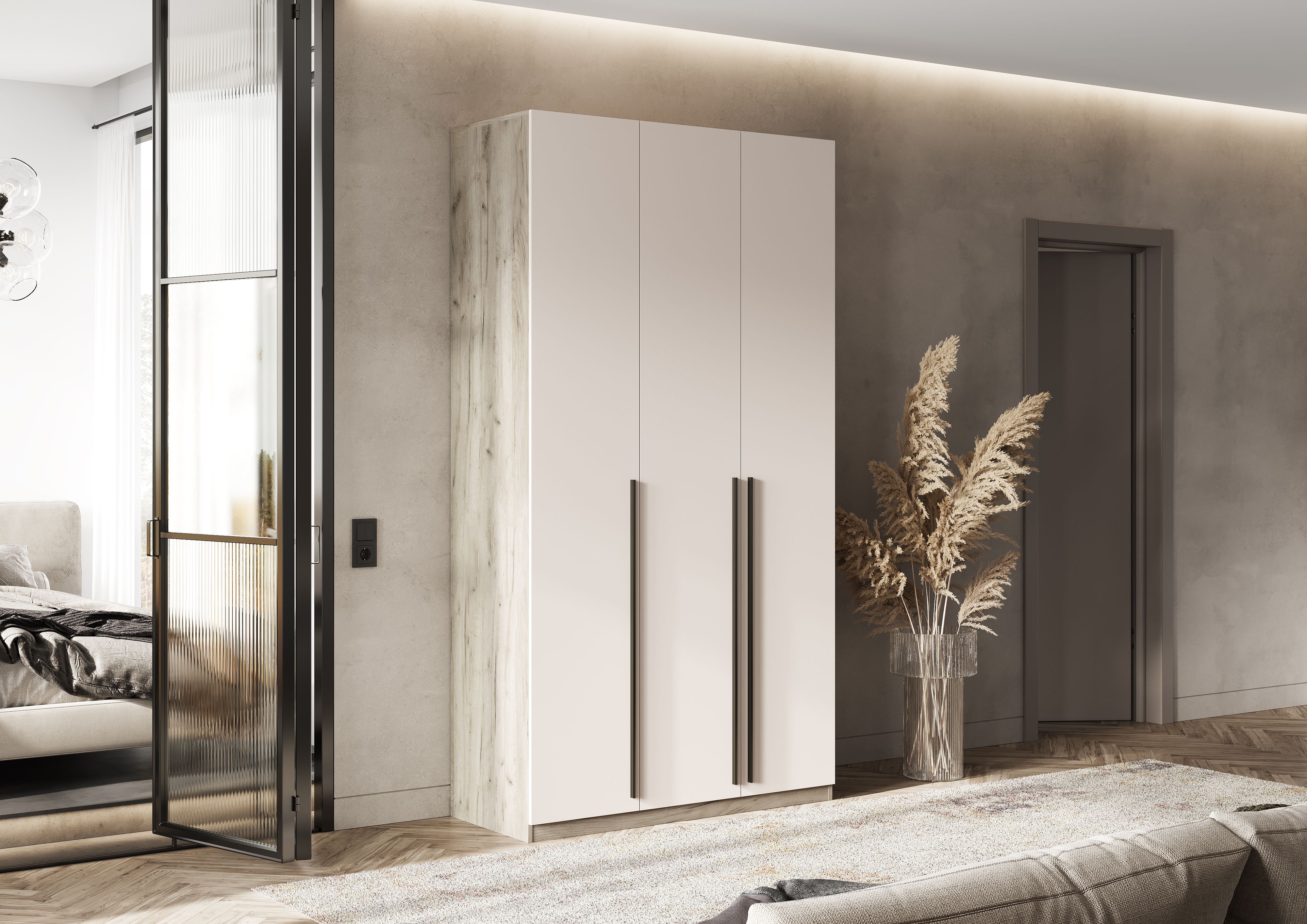 Шкаф Ларго 3-х ств.(1200) (Кашемир, Дуб Крафт серый (черная))