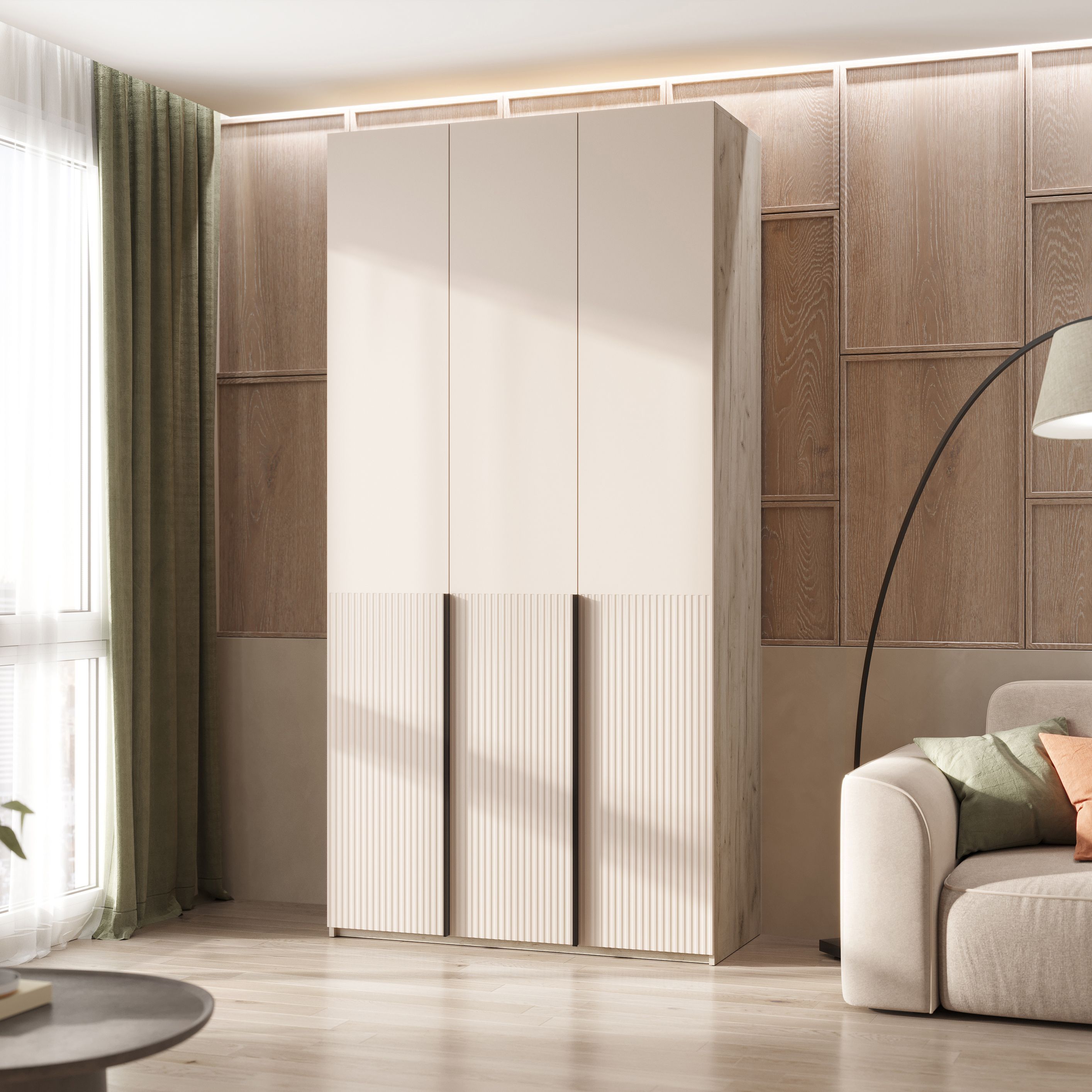 Шкаф Марвэл 3-х ств. (1200) с доп.ящиками (Кашемир, Дуб Крафт серый)