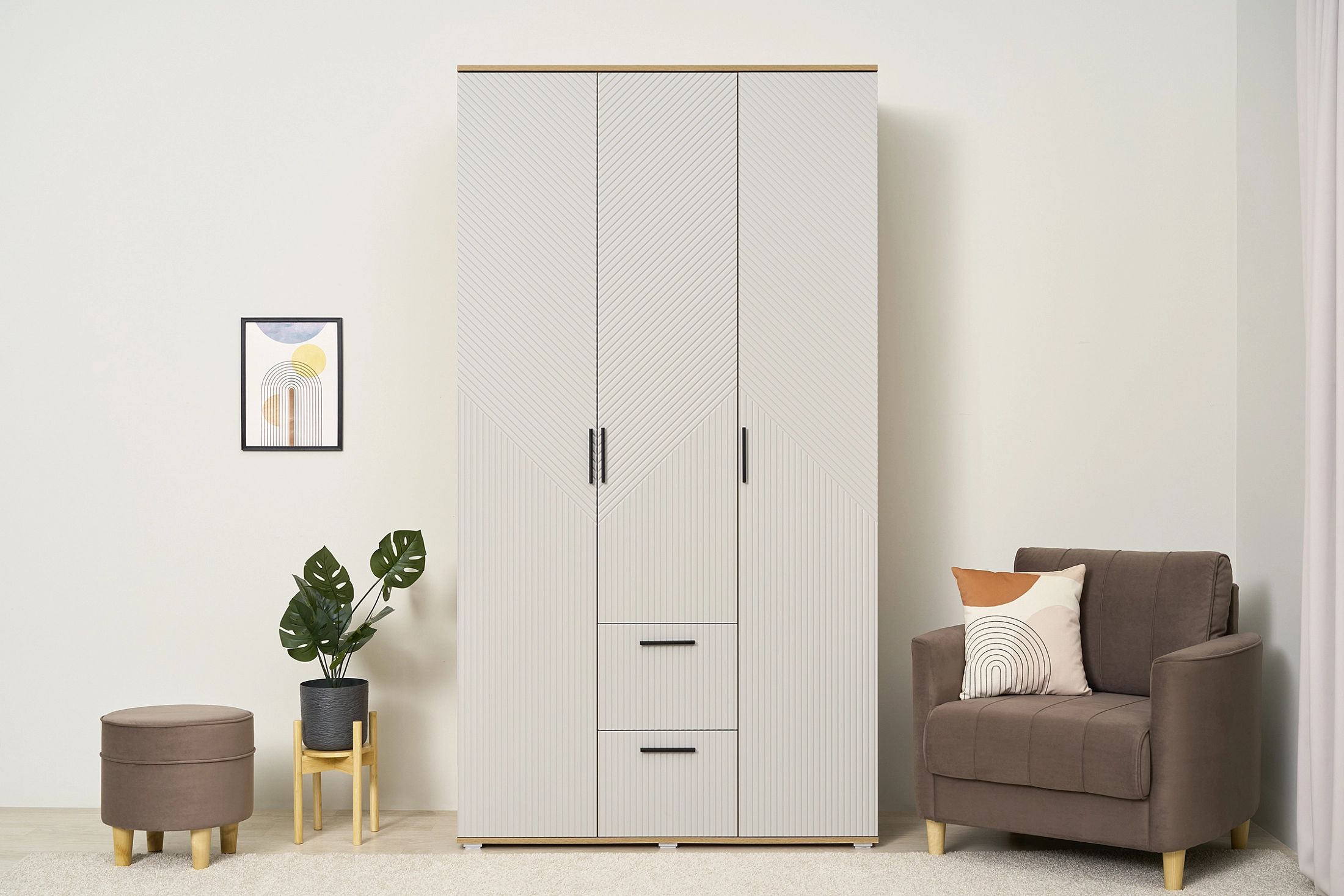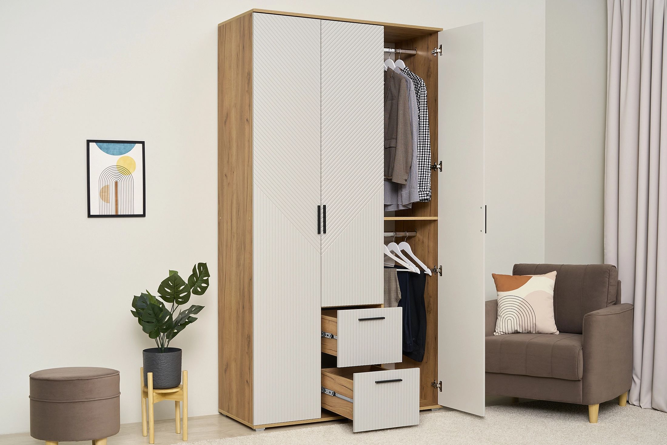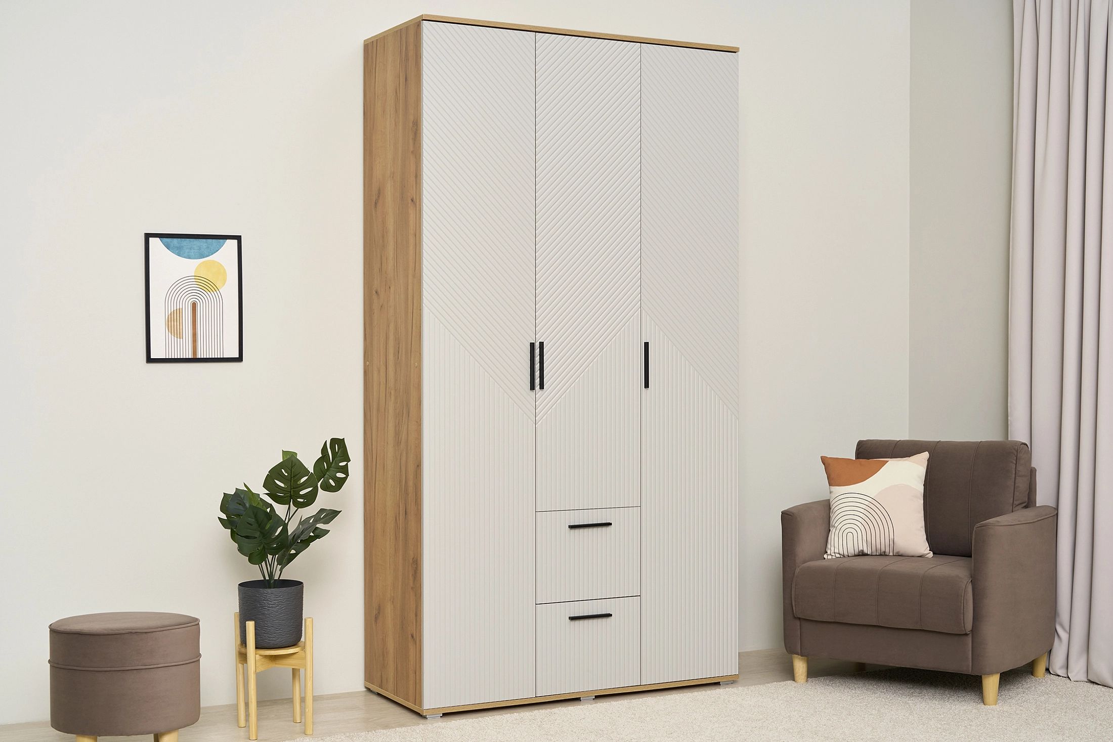 Сильвия Шкаф 3-х ств.(1200) (Браш Лайт Грей, Дуб Крафт)