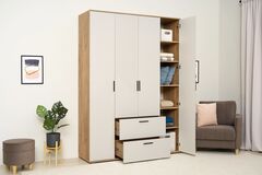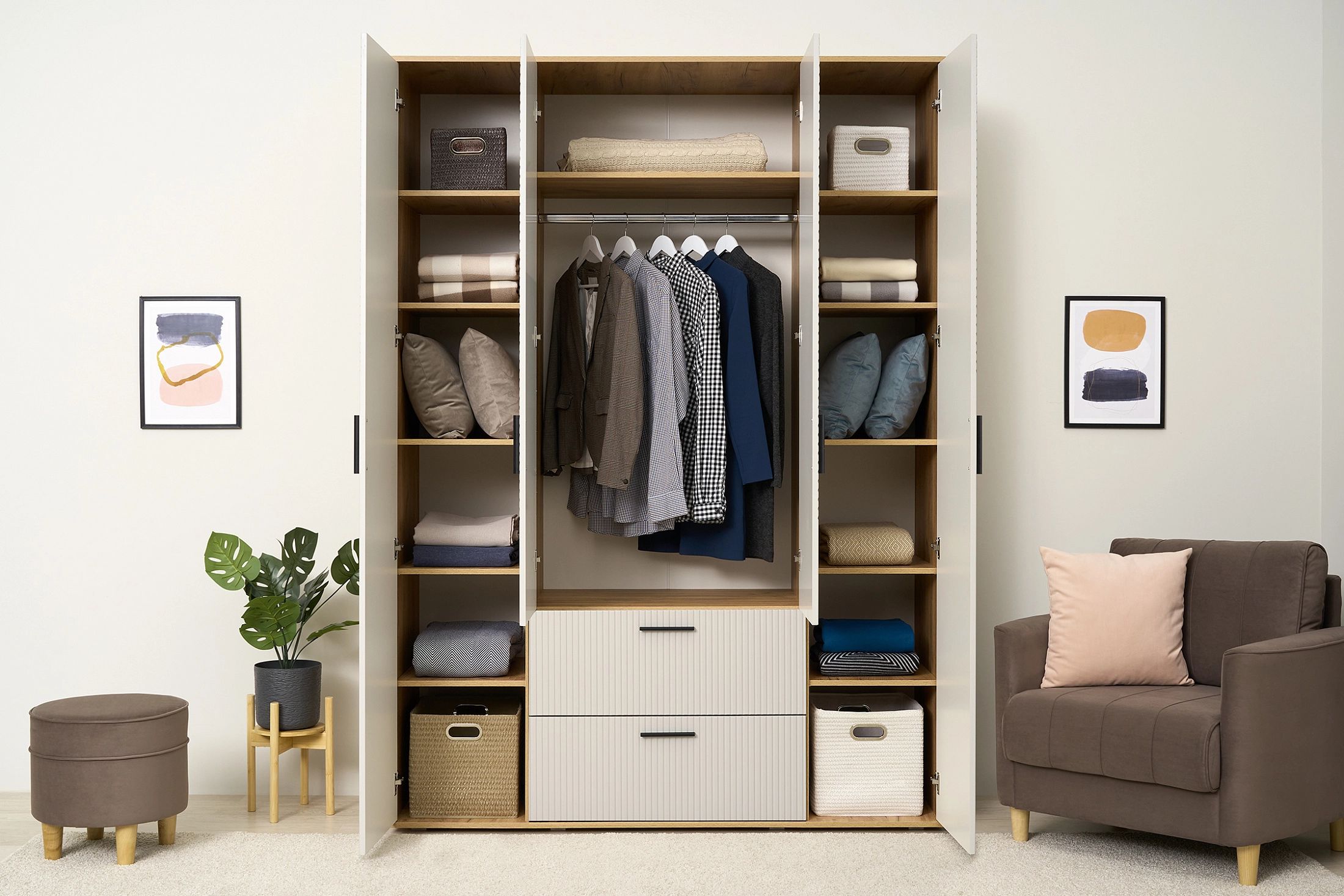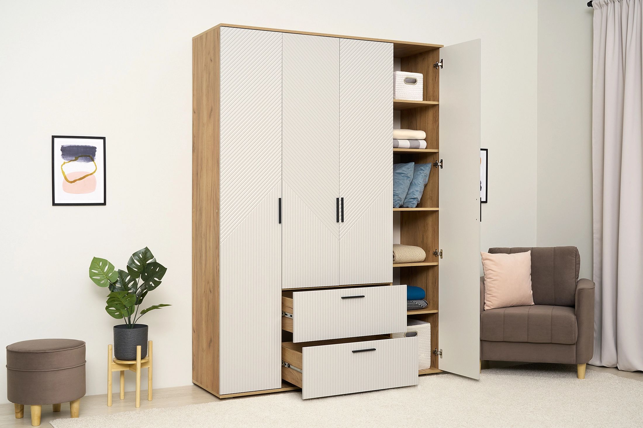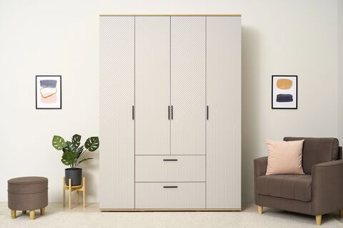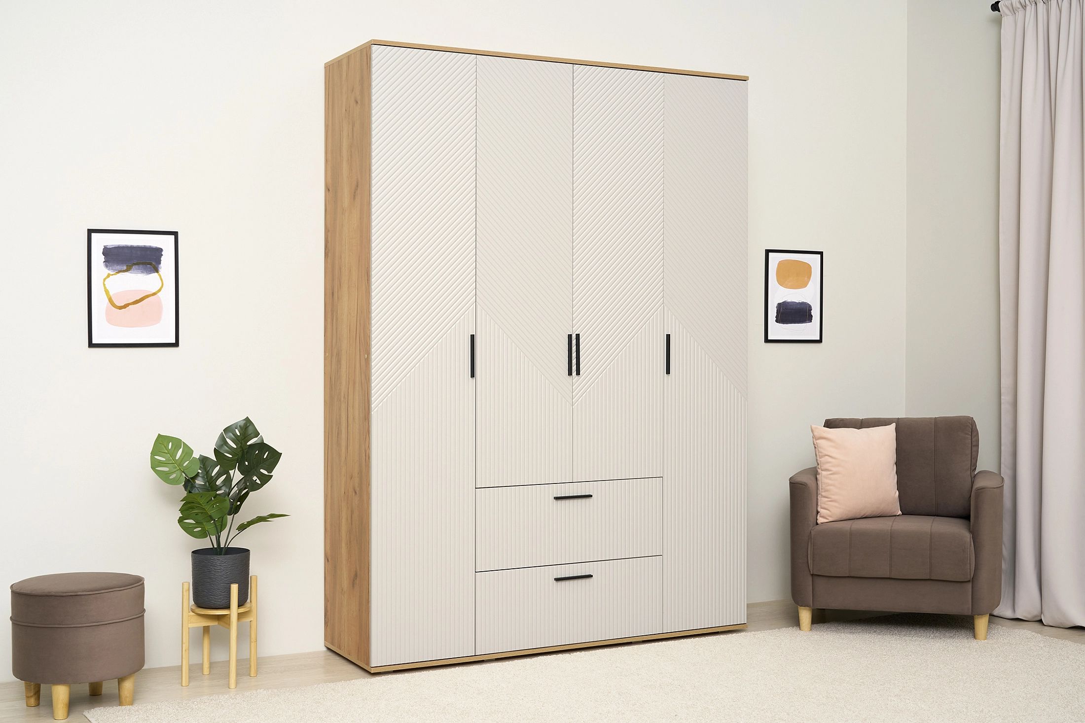 Сильвия Шкаф 4-х ств.(1600) (Браш Лайт Грей, Дуб Крафт)