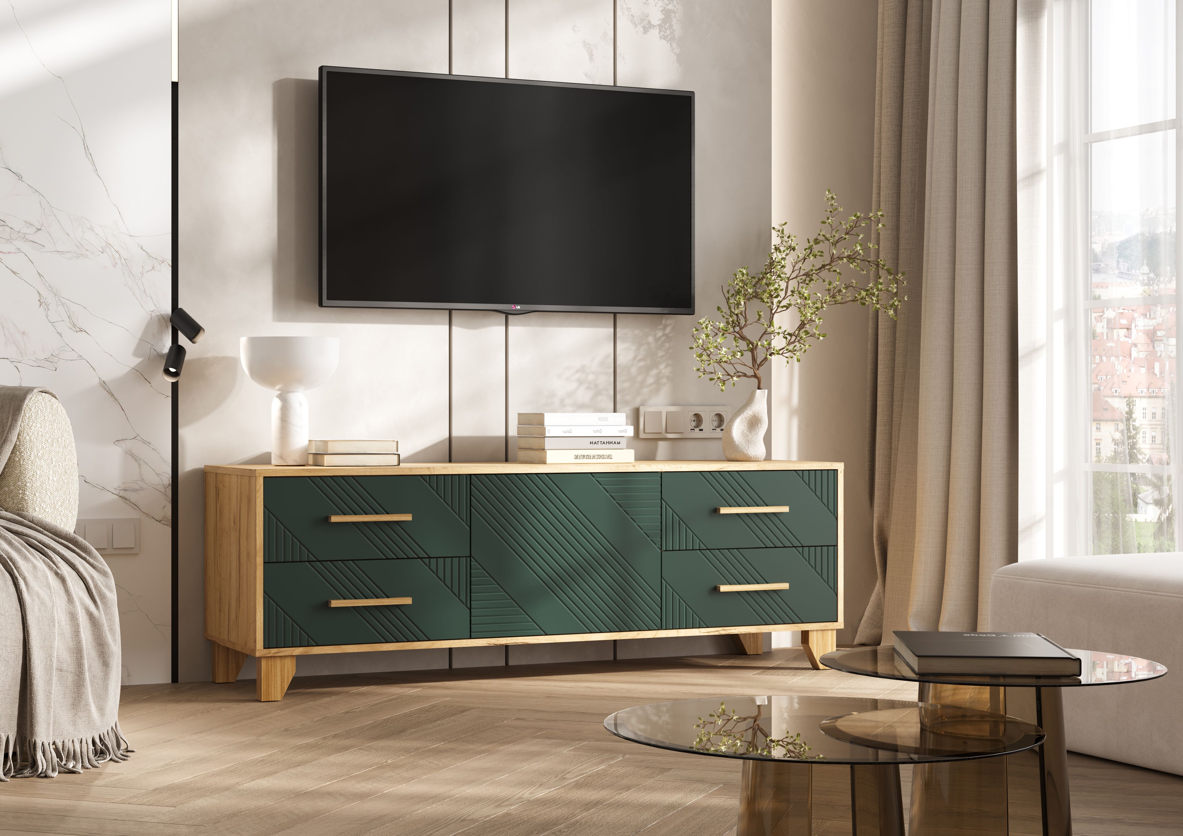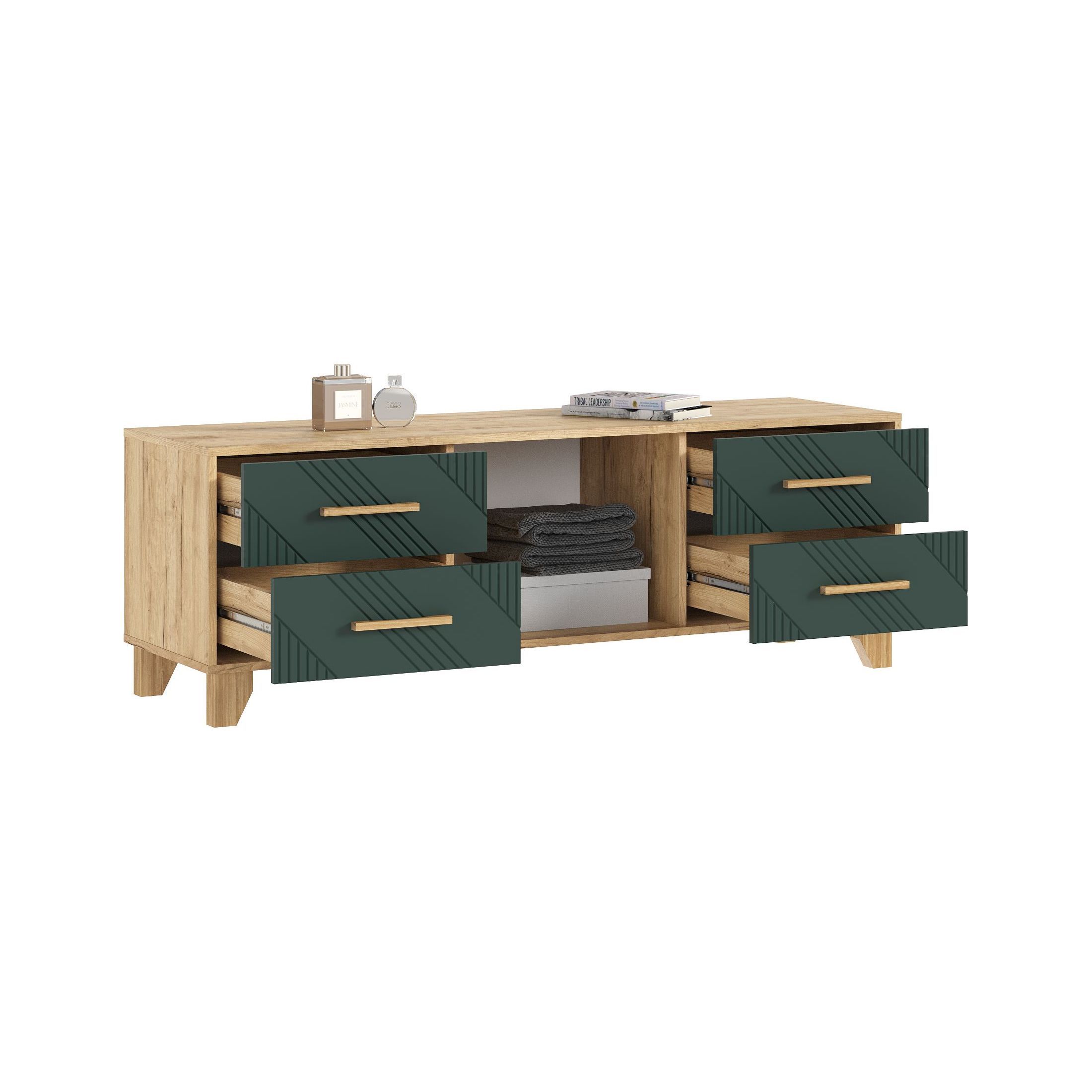 Тумба ТВ Ирис (1500) (Браш Мени Грин, Дуб Крафт)