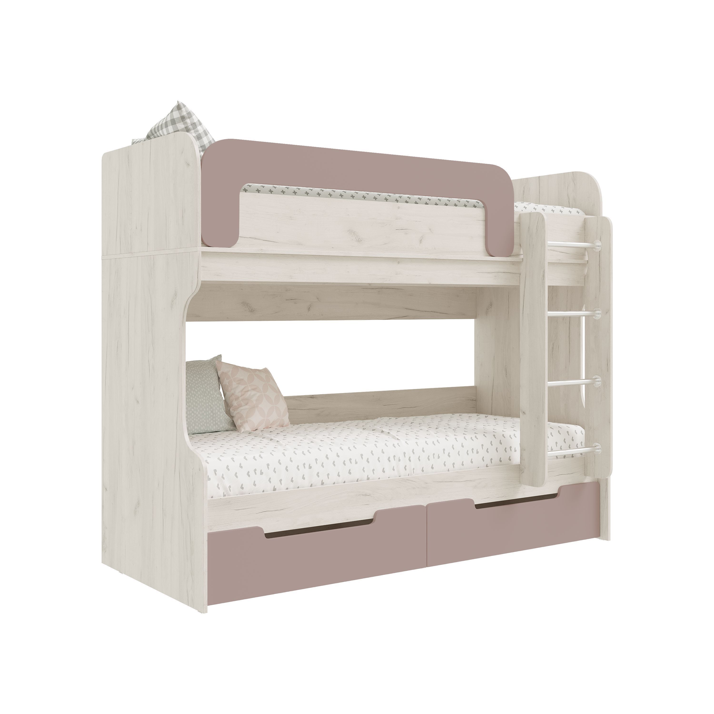 Юниор-4 Кровать 2-х ярусная (чердак) (Шарли Pink, Дуб Крафт Белый)