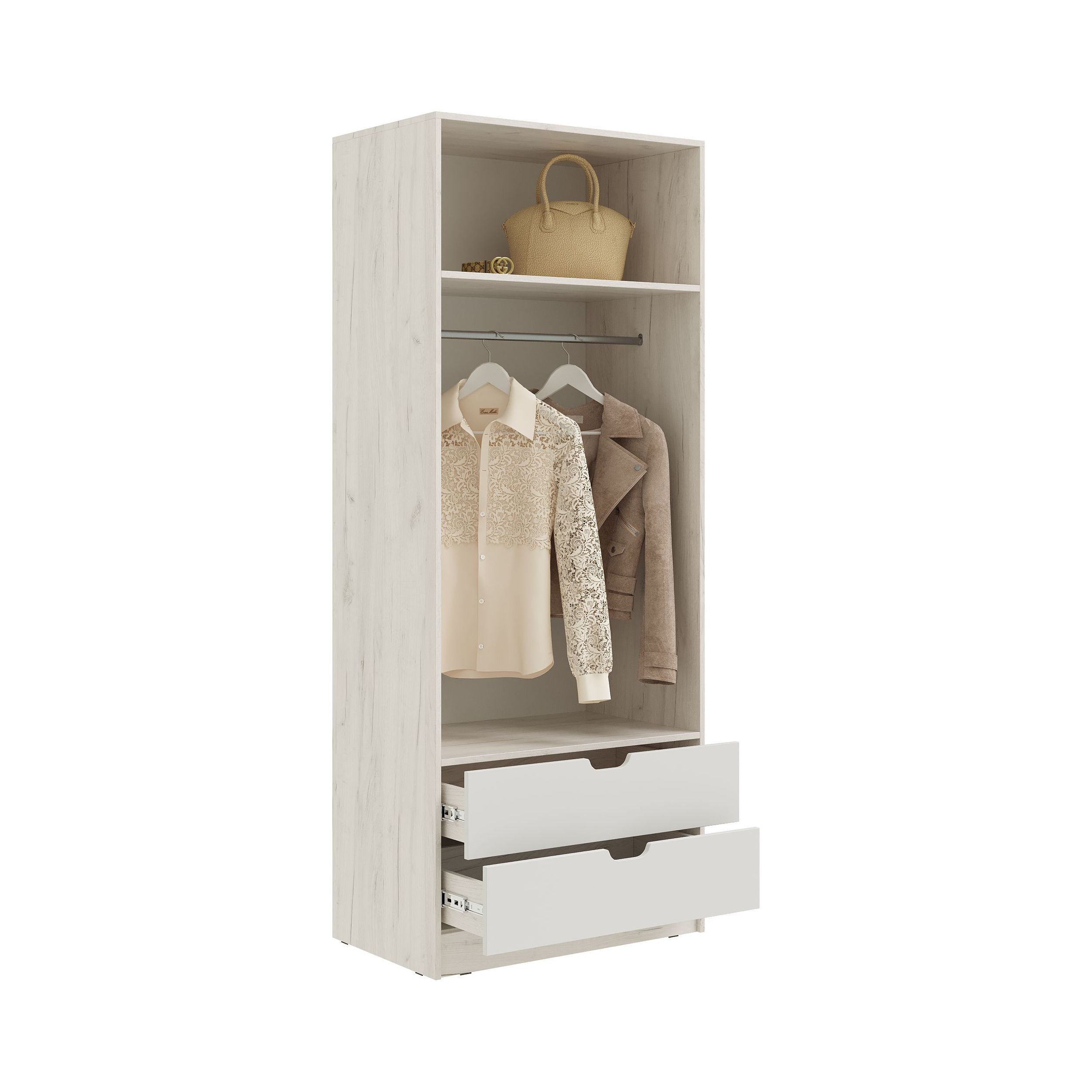 Юниор-4 Шкаф (800) (Шарли Белый, Дуб Крафт Белый)
